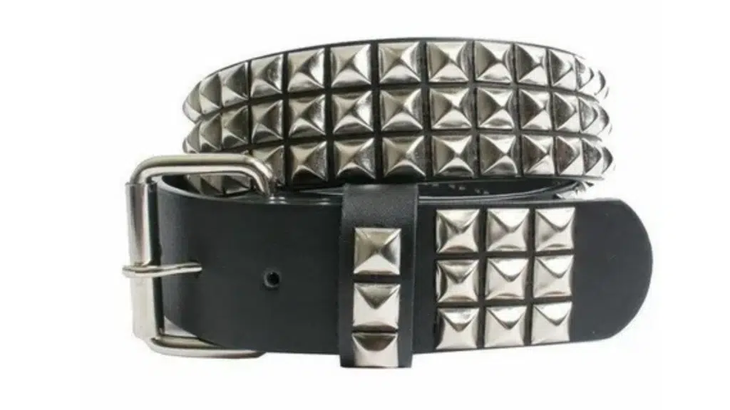 Popular in punk or rock fashion, this belt is decorated with metal studs or spikes and adds an edgy look.