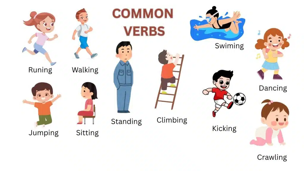 🔹 Action Verbs (Physical Movement)